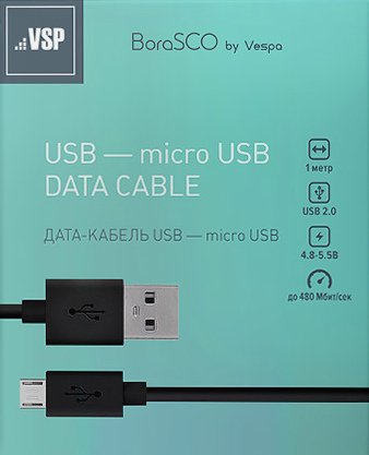 Кабель USB 2.0 - micro USB, 1м, 2A , BoraSCO VSP (20542)