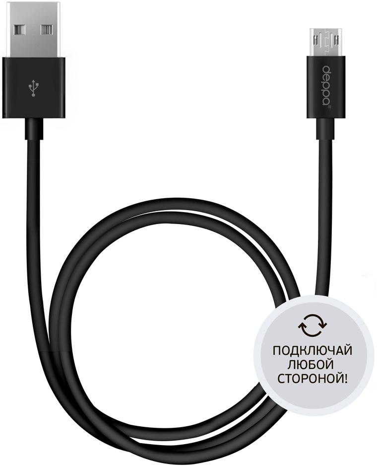 Кабель USB 2.0 > microUSB Partner (1м, 2.4А, двусторонний, плоский)