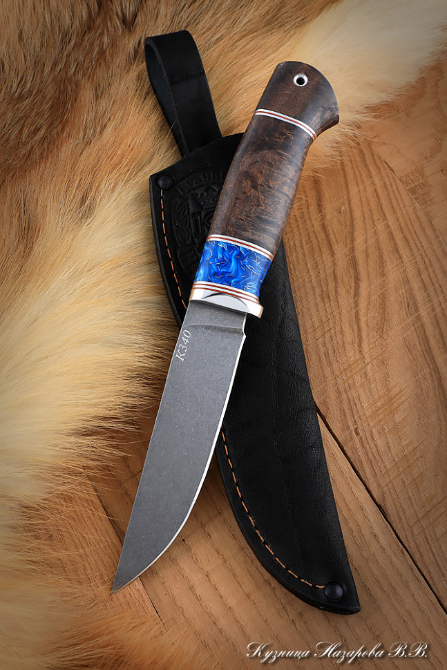 Нож Назарова Боец сталь К340 карельская береза иск.камень