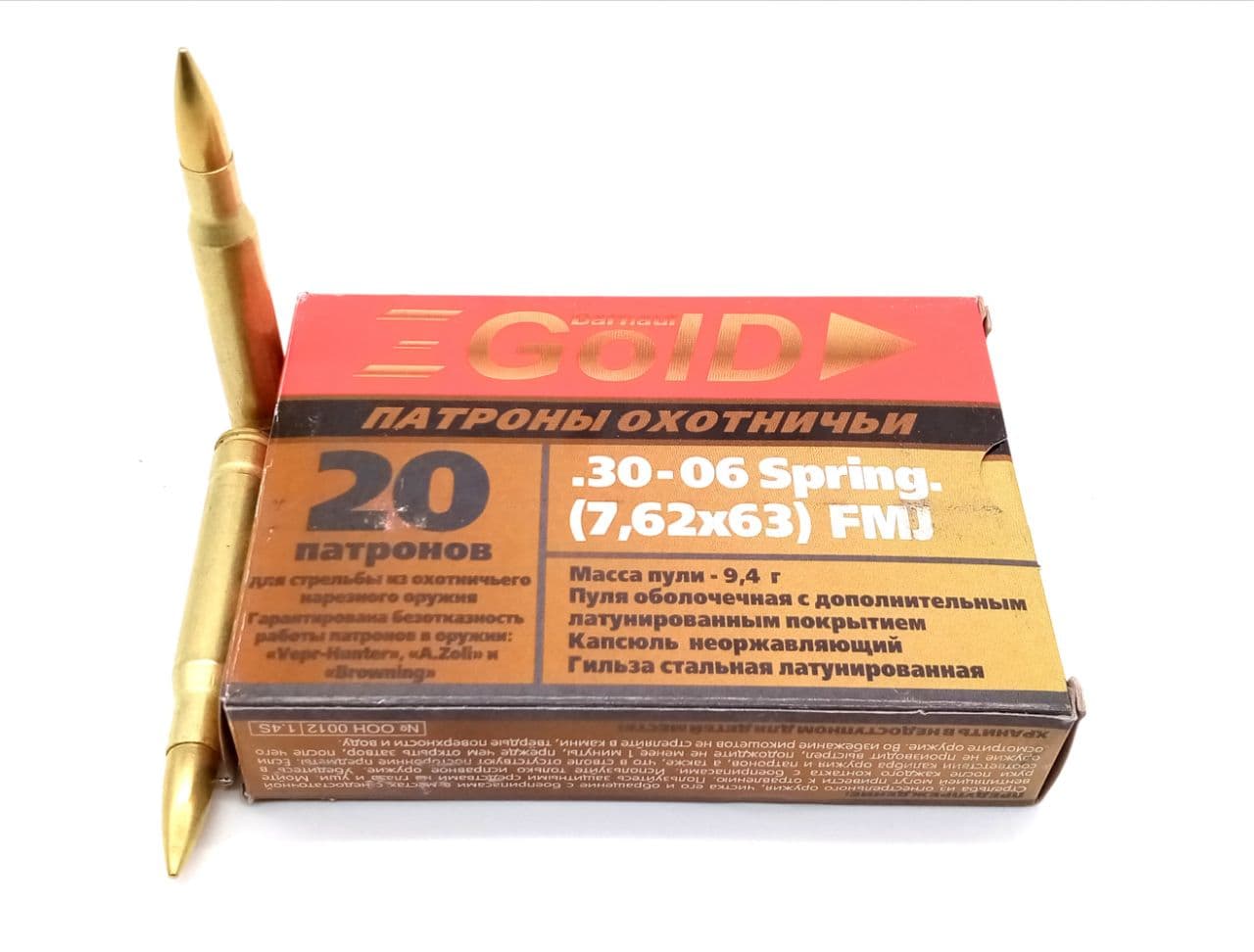 Патрон 7.62х63 (30-06 Sprg) БПЗ ОБ (FMJ) GOLD 9,4г