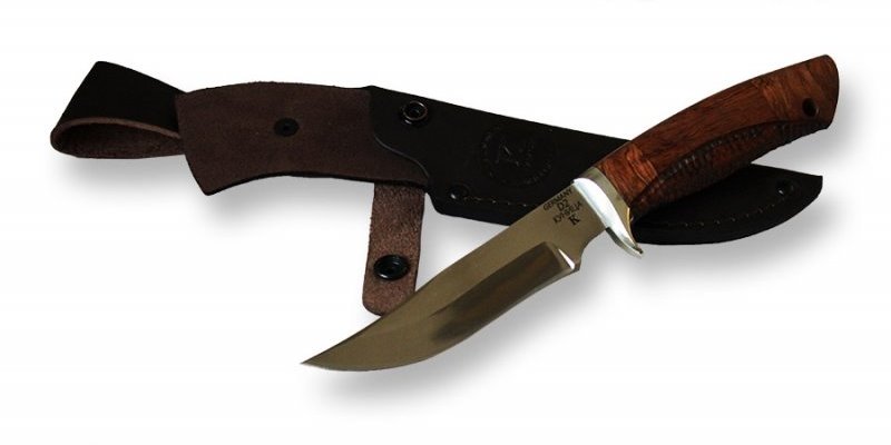 Нож укомплектован индивидуальными ножнами из натуральной кожи, так же прилагается сертификат государственного образца