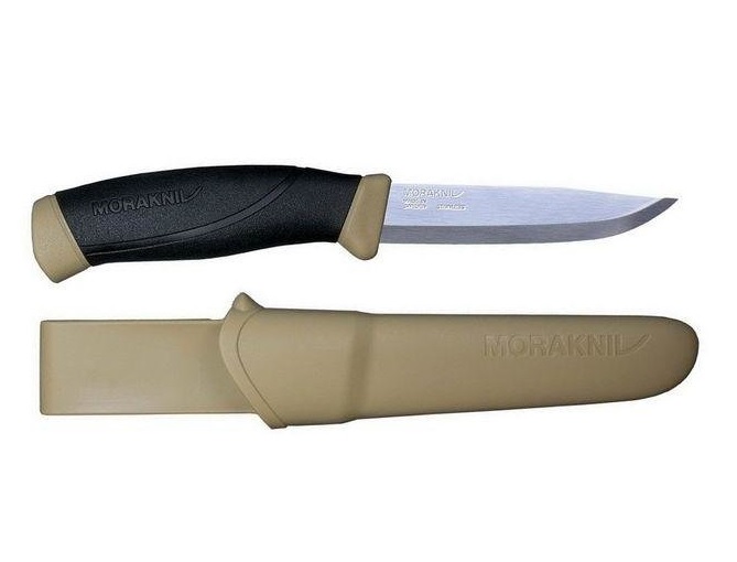 Mora Companion Desert с клинком из нержавеющей стали - наиболее оптимальный выбор среди разнообразия моделей, ведь такой клинок требует наименьшего внимания и совершенно неприхотлив. Рукоять ножа выполнена из резинопластика, она имеет очень хорошее сцепление с ладонью и избегает проскальзывания в руке. Ее легко удерживать благодаря удобной форме и плавным изгибам. Простые, но в то же время, надежные ножны обеспечивают хорошее удержание ножа. Благодаря поясной петле их можно носить на ремне.