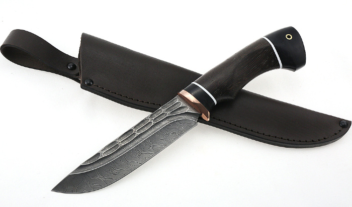 Нож Ворсменский Алтай Дамаск ламинированный с воронением, венге, акрил, мельхиор