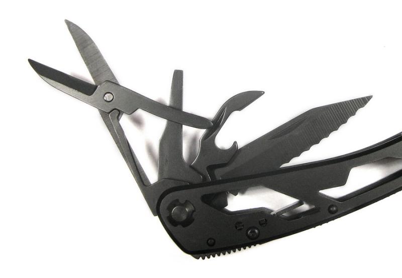 Плоскогубцы, Кусачки обычные, Нож прямой, Нож серрейторный, Пила, Ножницы, Отвертка плоская, Шило, Открывалка для бутылок, Открывалка для консервов