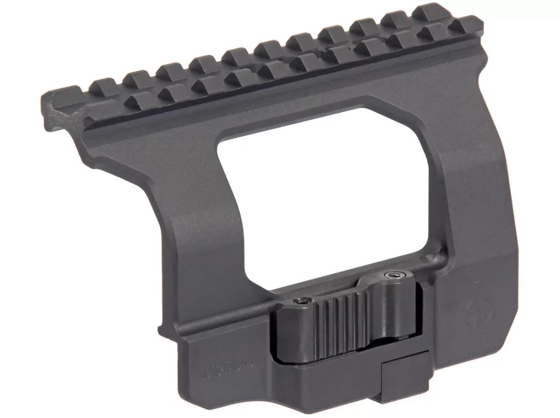 Быстросъёмный кронштейн SAG АК ТАС предназначен для установки оптических прицельных приборов и другого оборудования с посадочным интерфейсом MIL-STD-1913 (Picatinny) на гражданские (охотничьи и спортивные) карабины "Сайга" и "Вепрь", а также другие карабины с установленной боковой планкой типа "ласточкин хвост". Оснащён механизмом быстрой фиксации. Не требует внесения изменений в конструкцию прицелов и оружия.