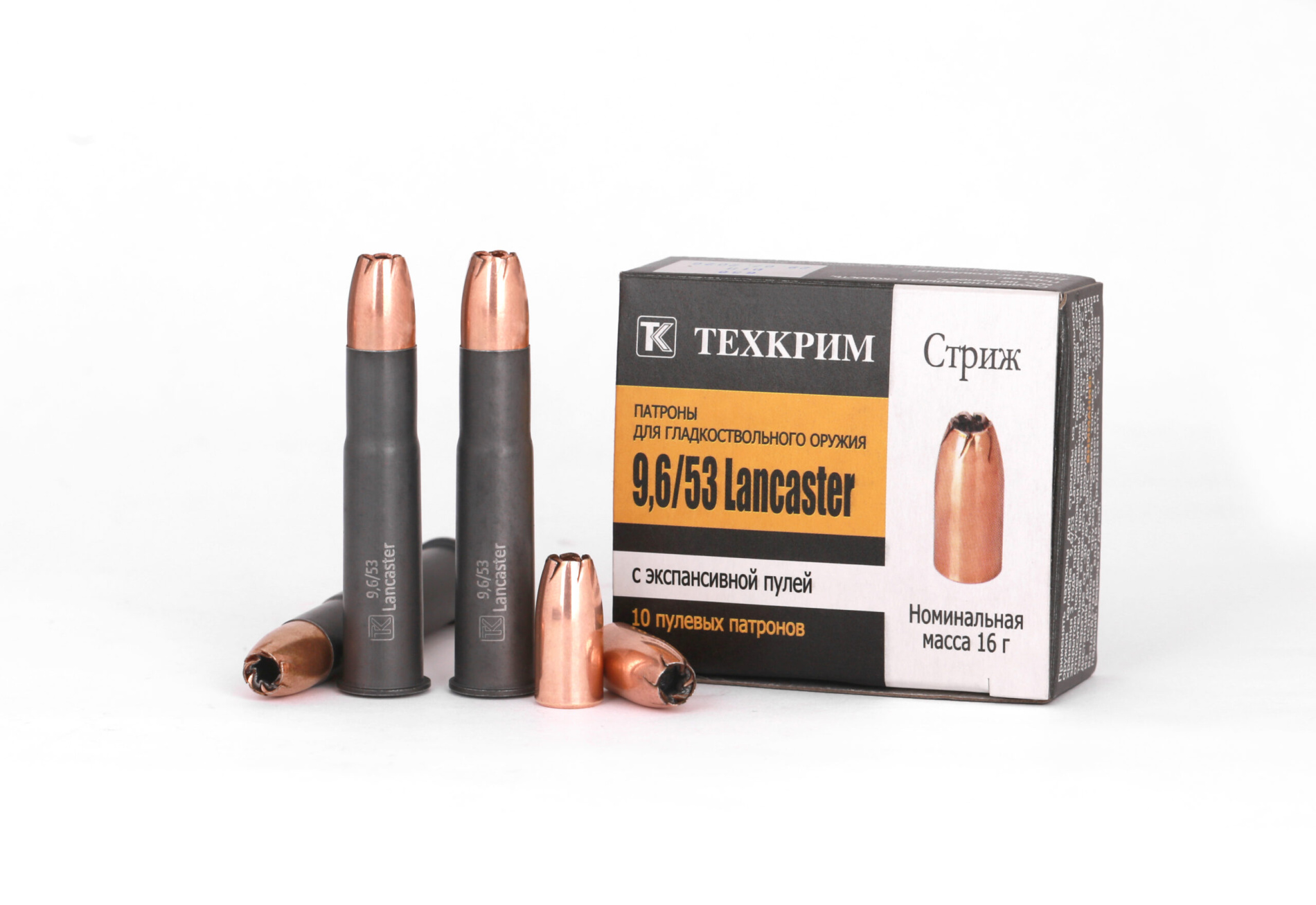Бренд Техкрим Страна-производитель Россия Калибр, мм 9,6х53 Lancaster Лицензионный товар Да Тип товара Патроны Начальная скорость снаряда, м/с 600 Снаряд Пуля экс. (HP) Вес снаряда, г/гр 16 -