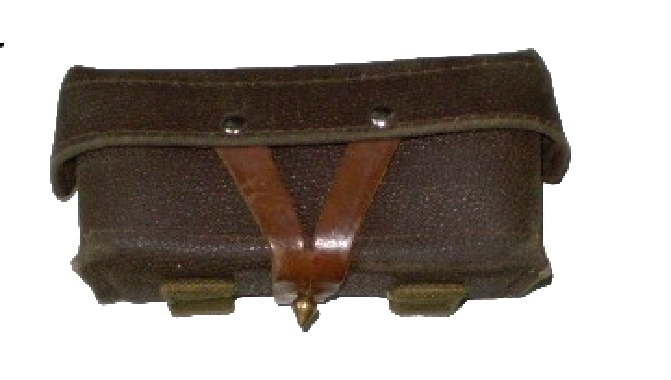 Подсумок для СКС. Материал - кирза, застежка из натуральной кожи. Вместимость 5 обойм патронов калибра 7.62 x 39 . Габариты в закрытом виде: 160 мм Х 50 мм Х 75 мм.Сделано в СССР.
