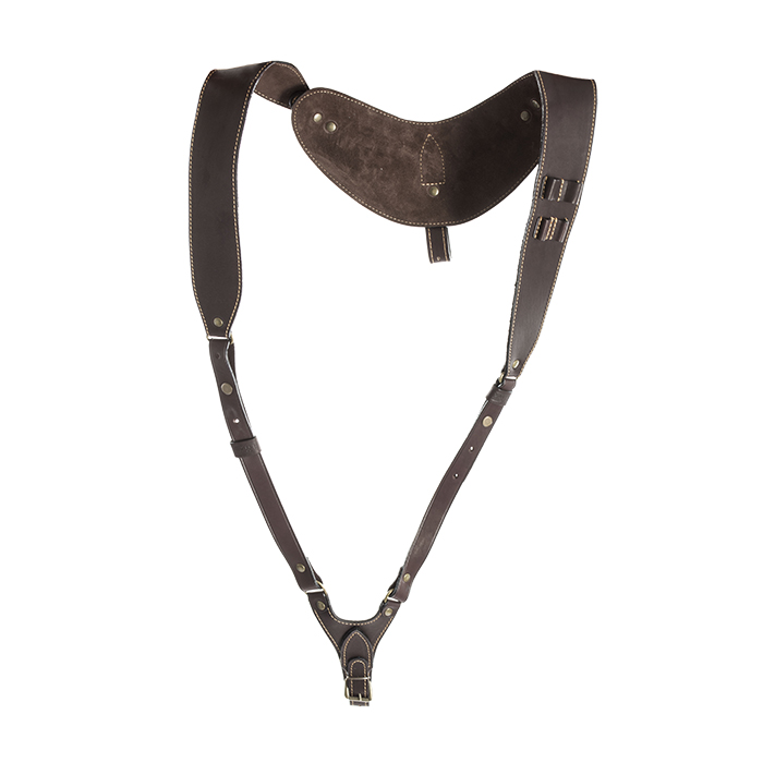 Ремень ружейный двухплечевой с патронташем для двух патронов К-7,62 ручной работы выполнен с применением высококачественной натуральной кожи повышенной толщины и предназначен для переноски оружия во время охоты.