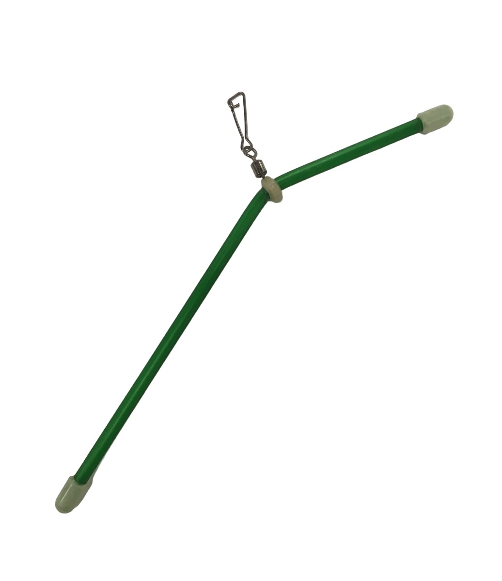 Применяется противозакручиватель для уменьшения вероятности захлеста поводка за основную леску. Из основных преимуществ противозакручивателя можно отметить также хорошее скольжение лески. За счет имеющегося изгиба поводок при забросе меняет траекторию полета и летит немного в стороне. Лучше всего себя зарекомендовал Г-образный противозакручиватель. Вешают его длинным концом к поводку, уменьшается риск запутывания. На противозакручивателе имеется карабин, к которому и крепится кормушка. Поводок при применении противозакручивателя также вяжется на основной леске и перед ним лучше всего поместить бусинку. Она необходима для предохранения узлов от воздействии скользящего противозакручивателя.
