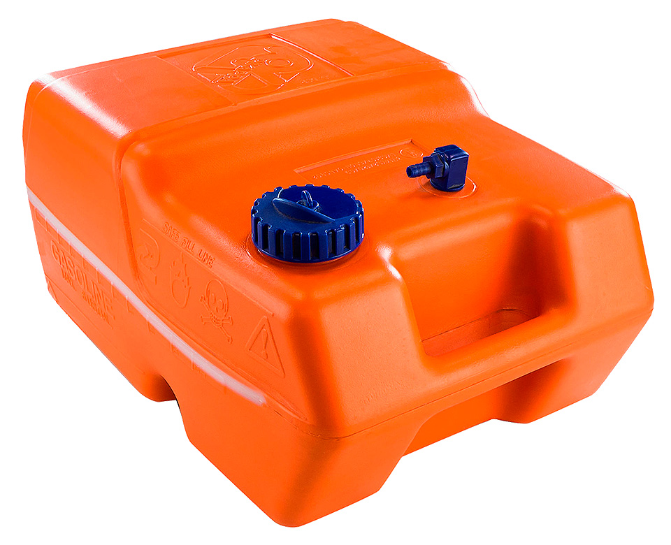 Заливная горловина с резьбовой крышкой и вентиляционной пробкой. Патрубок под шланг отбора топлива. Внутренняя перегородка позволяет иметь резерв топлива (3 литра). Вставка из полупрозрачного пластика для облегчения контроля уровня топлива (для оценки уровня топлива переверните бак в вертикальное положение).