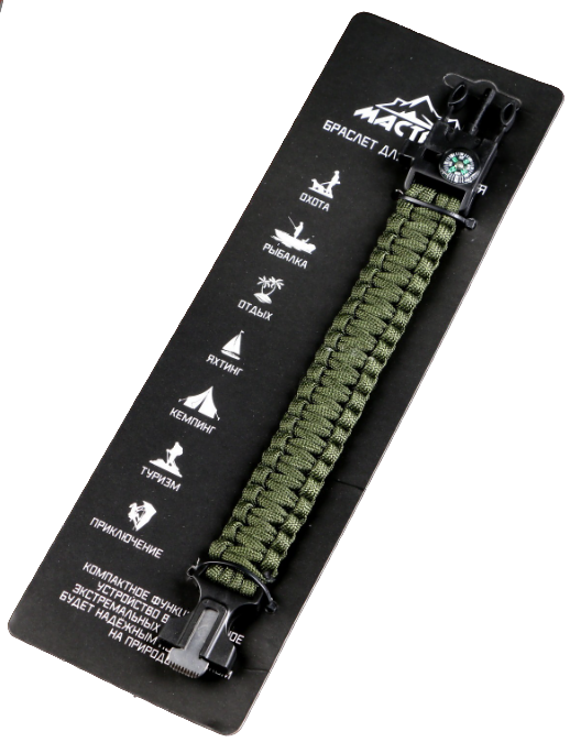 Браслет для выживания 4 в1 (паракорд, компас, свисток, огниво), 25.5х2.5 см, 3 м, тёмно-зелё 2714827