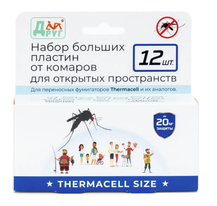 Набор больших пластин ДРУГ от комаров для открытого пространства (12 штук) (ПД-12)