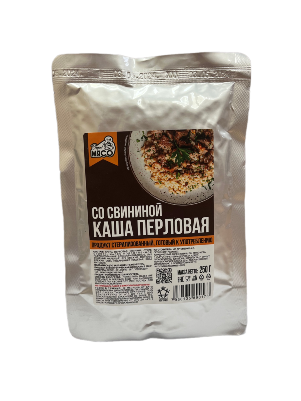 Готовая еда "Каша перловая со свининой в соусе" 250гр (9шт/к)