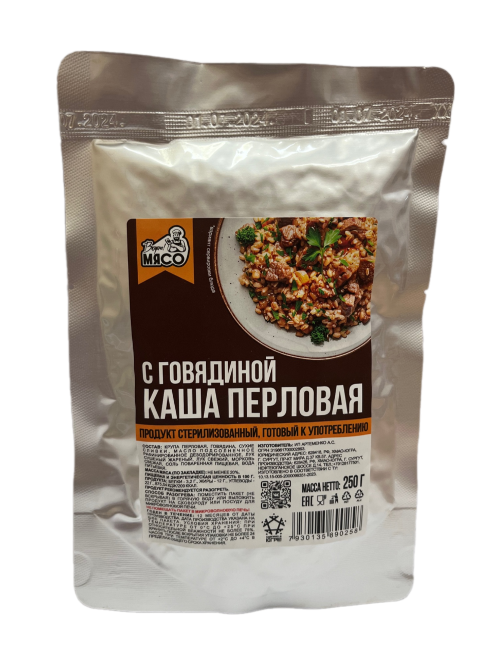 Готовая еда "Каша перловая с говядиной в соусе" 250гр (9шт/к)