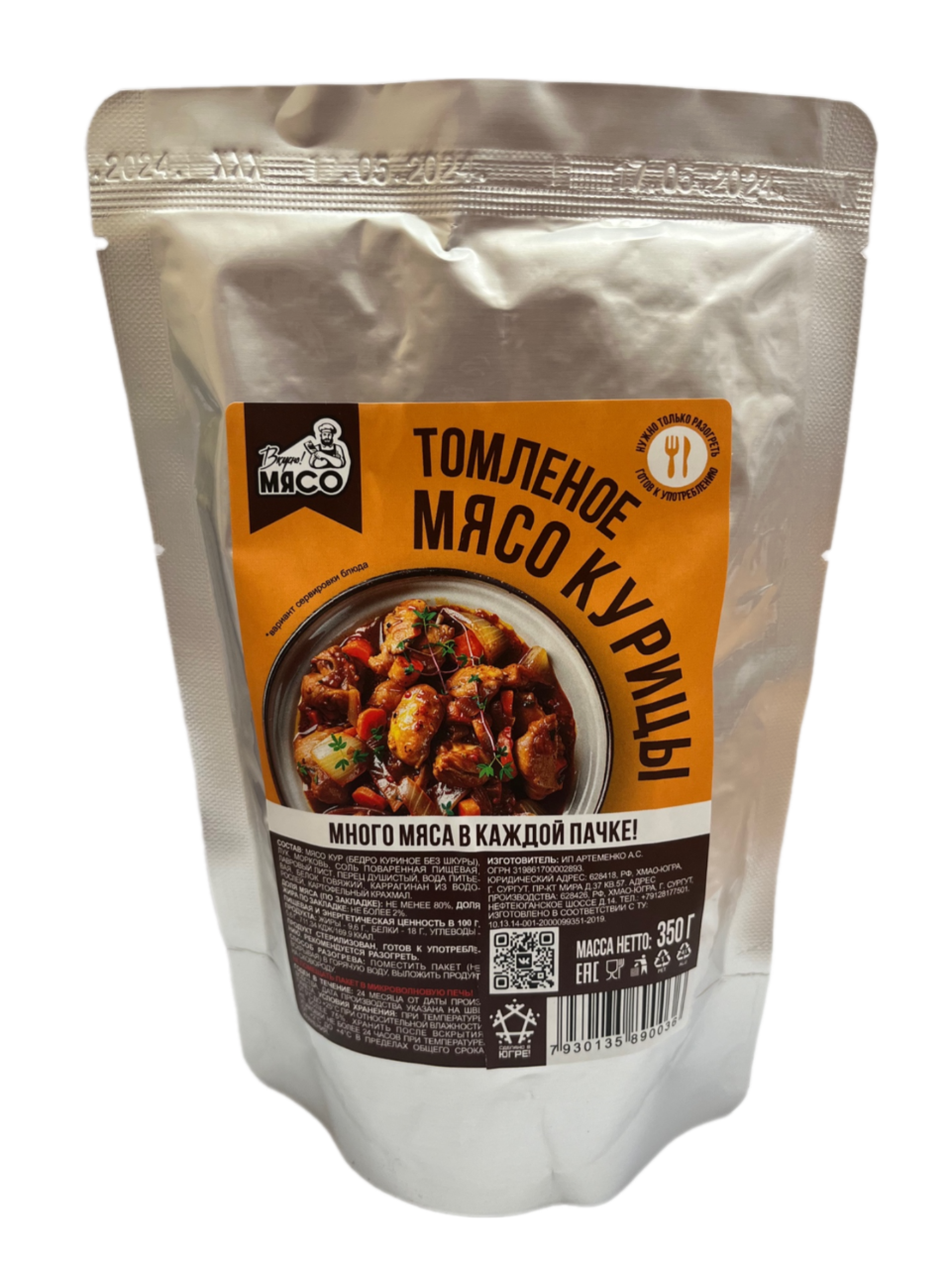 Готовая еда "Мясо курицы томленое в собственном соку" 350гр (8шт/к)