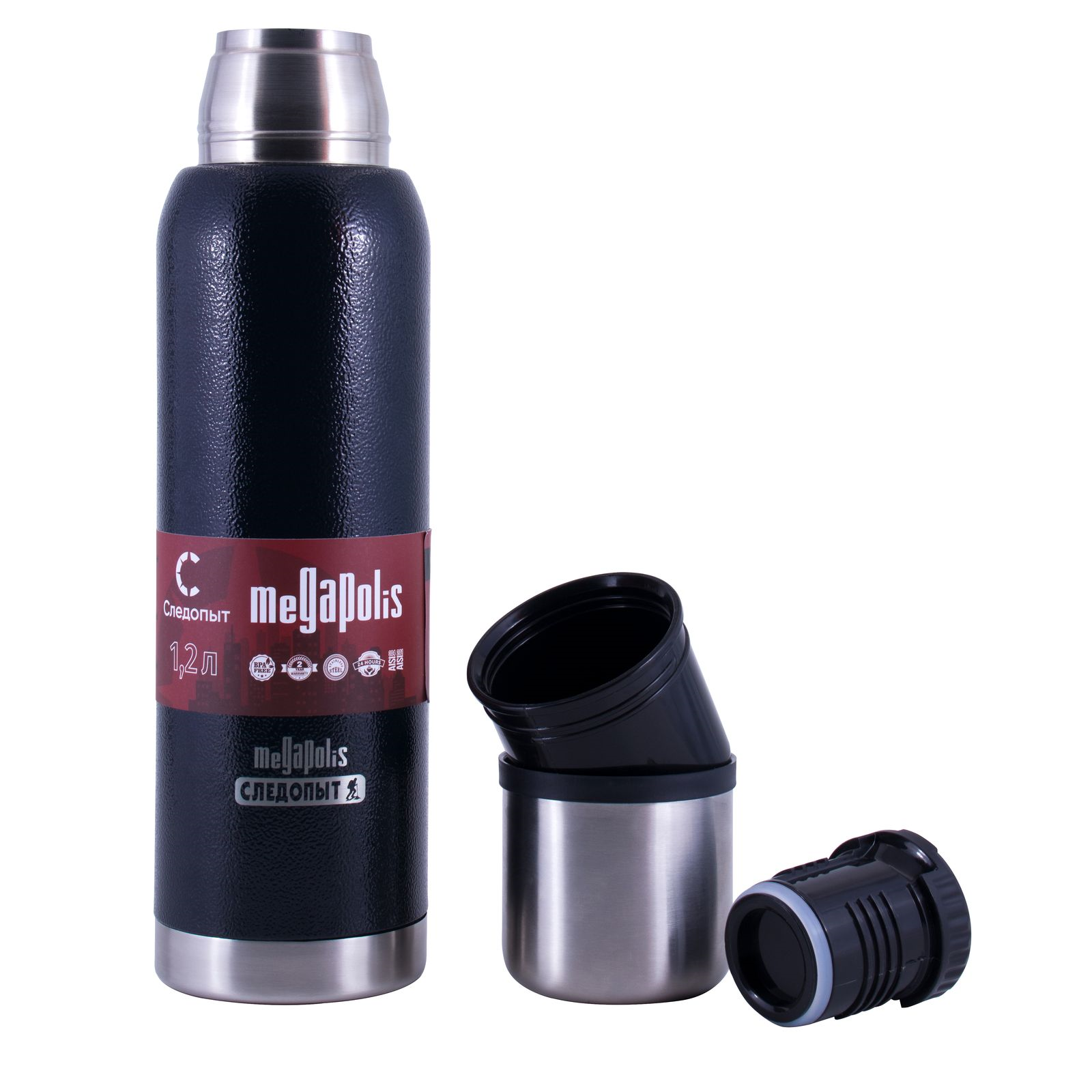 Термос СЛЕДОПЫТ-MEGAPOLIS,2 крышки, 1,2 л (PF-TM-22)