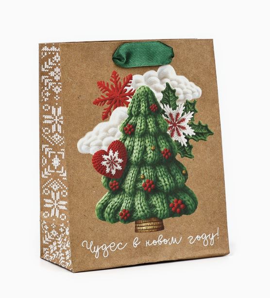Пакет подарочный новогодний крафтовый «Новогодняя ёлочка», S 15х12х5.5 см 10365484