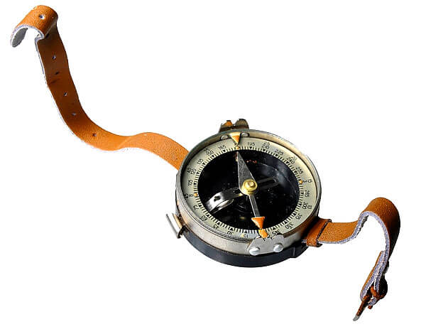 • Компас Адрианова – первый российский компас с фосфоресцирующей подсветкой – состоит из корпуса, в центре которого на острие иглы помещена магнитная стрелка. При незаторможенном состоянии стрелки ее северный конец устанавливается в направлении на Северный магнитный полюс, а южный – на Южный магнитный полюс. В нерабочем состоянии стрелка закрепляется тормозом (арретиром). Внутри корпуса компаса помещена круговая шкала (лимб), разделенная на 120 делений. Цена одного деления составляет 3°, или 50 малых делений угломера (0-50). Шкала имеет двойную оцифровку. Внутренняя оцифровка нанесена по ходу часовой стрелки от 0 до 360° через 15° (5 делений шкалы). Внешняя оцифровка шкалы нанесена против хода часовой стрелки через 5 больших делений угломера (10 делений шкалы). Для визирования на местные предметы (ориентиры) и снятия отсчетов по шкале компаса на вращающемся кольце компаса закреплено визирное приспособление (мушка и целик) и указатель отсчетов.