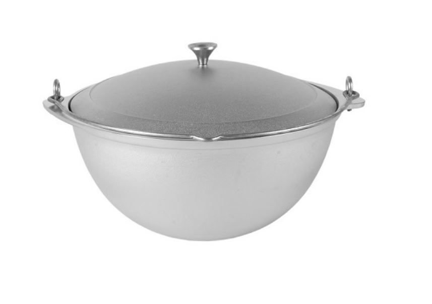 Литая алюминиевая посуда - идеальное соотношение демократичной цены, традиционного дизайна и проверенного покупателями качества. Эта посуда подходит для готовки в любых условиях, в том числе и на открытом огне. Для подвешивания над огнем имеется крепкая ручка, которая прочно крепится к котлу.